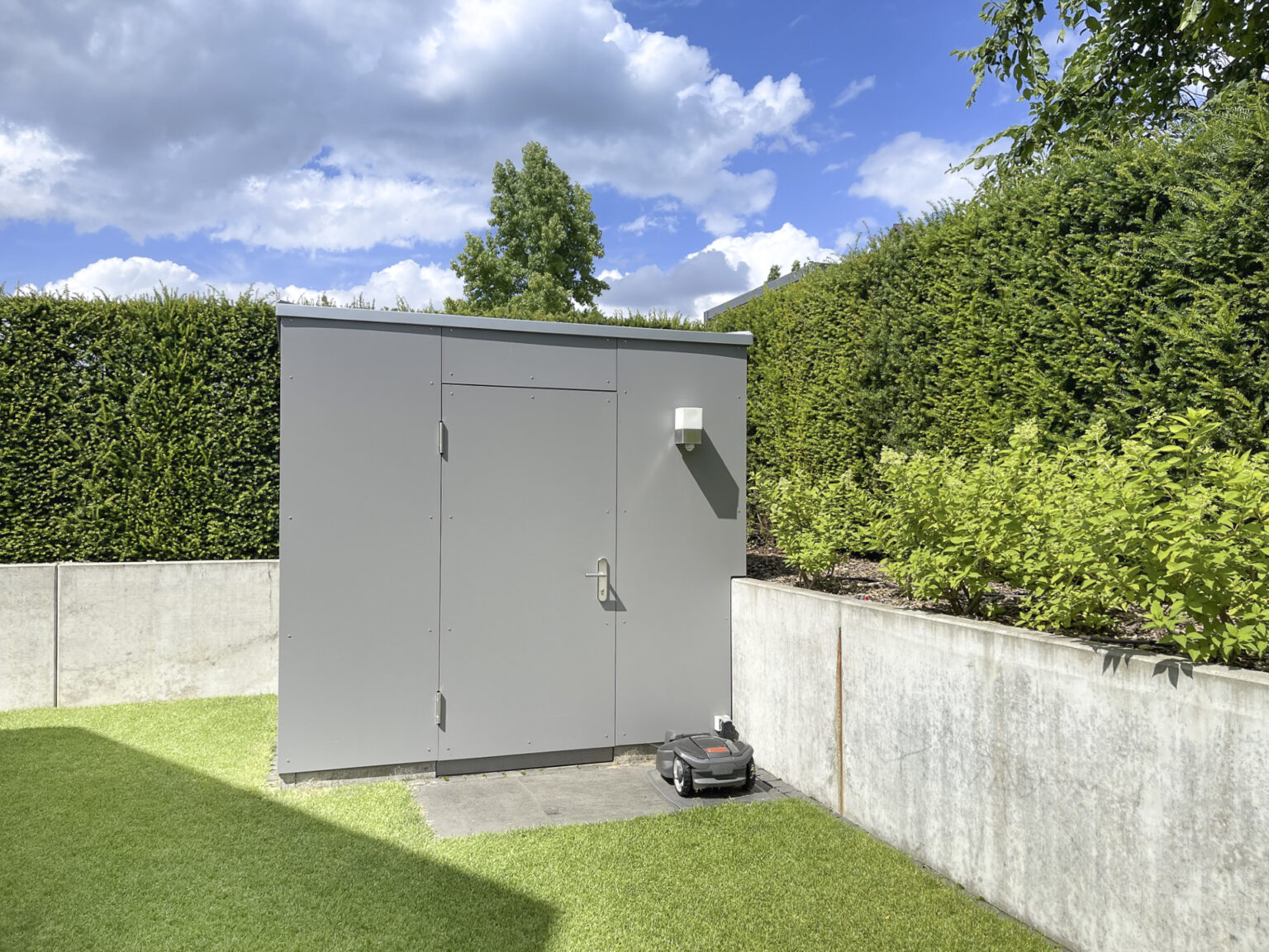 Das Gartenhaus bietet perfekten Stauraum für alle Gartengeräte und eine robuste Werkbank für Heimwerkerprojekte. Auf der Terrasse oder dem Balkon wartet die Entspannung im Lieblingssessel oder der coolen Chill-Lounge zum Beisammensein mit Familie und Freunden.