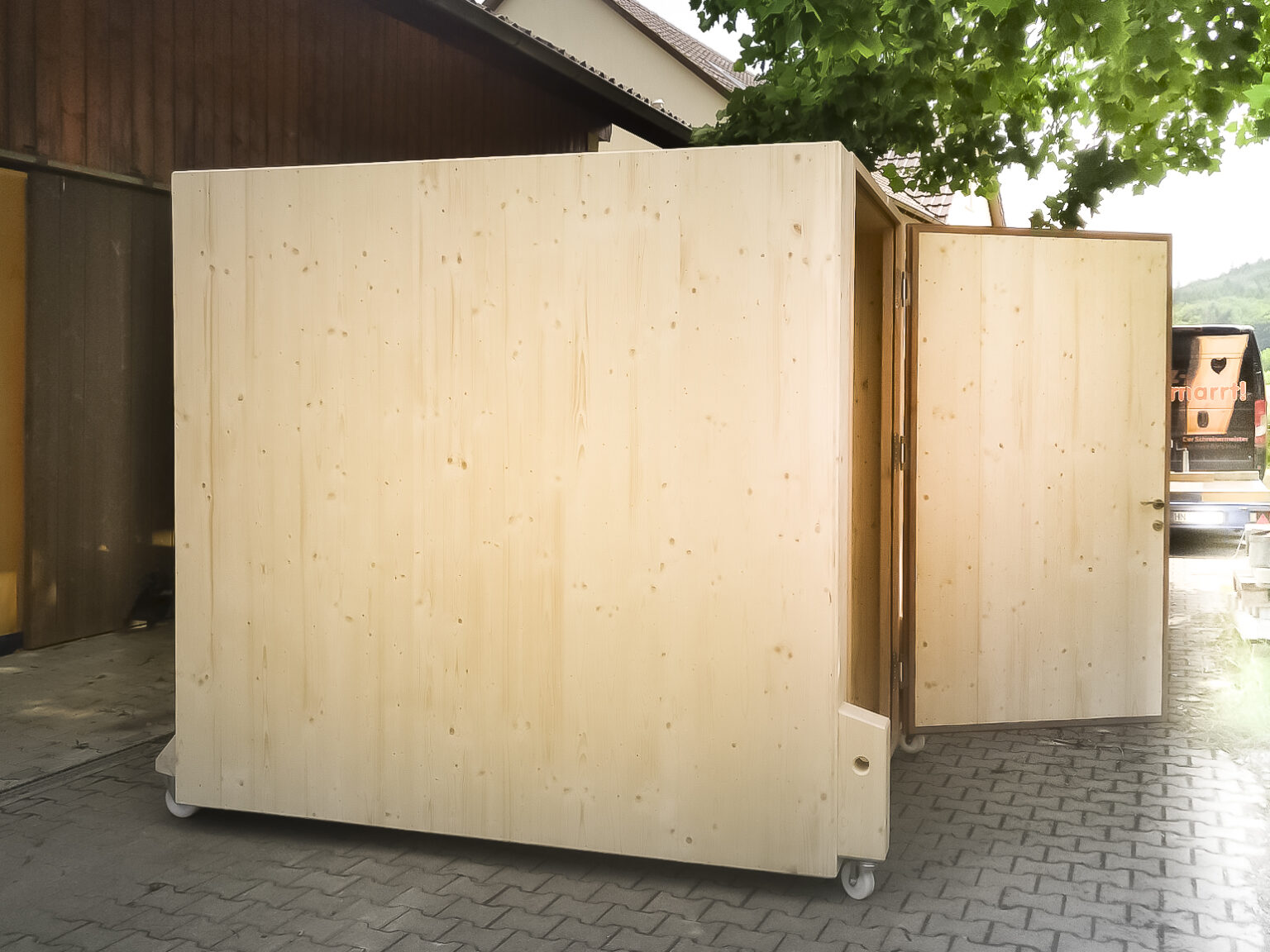 Das Herzstück dieser maßgefertigten Aufbewahrungsbox ist der großzügige, isolierte Innenraum, der dafür sorgt, dass alle Gegenstände optimal geschützt bleiben. Dank stabiler, leichtgängiger Rollen lässt sich die Box mühelos bewegen, was maximale Flexibilität und Benutzerfreundlichkeit gewährleistet. Diese Kombination aus Funktionalität und Mobilität macht die Box zur idealen Lösung für jede Lagerungsanforderung.